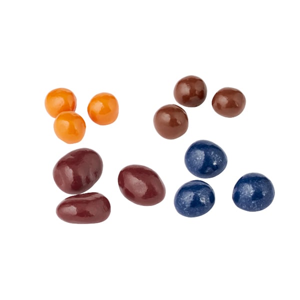Ingredients: Lime: Cacao Noel Royal Bittersweet Chocolate Couverture 64% (Cocoa Mass, Sugar, Cocoa Butter, Sunflower Lecithin, Vanilla), Cacao Noel Milk Chocolate Couverture 35% (Sugar, Cocoa Mass, Cocoa Butter, Milk Powder, Sunflower Lecithin, Vanilla), Cream, Lime Juice, Glucose, Sugar, Sorbitol, Butter, Colored Cocoa Butter (Cocoa Butter, one or more of the following FD&C Lakes or Dyes: Blue 1, Blue 2, Red 3, Red 40, Yellow 5, Yellow 6, Mica, Titanium Dioxide). Passionfruit: Cacao Noel White Chocolate Couverture 30% (Sugar, Cocoa Butter, Milk Powder, Sunflower Lecithin, Vanilla), Passion Fruit Puree, Mango Puree, Cream, Glucose, Butter, Sorbitol, Sugar, Pectin, Citric Acid, Colored Cocoa Butter (Cocoa Butter, one or more of the following FD&C Lakes or Dyes: Blue 1, Blue 2, Red 3, Red 40, Yellow 5, Yellow 6, Mica, Titanium Dioxide). Banana: Cacao Noel Royal Bittersweet Chocolate Couverture 64% (Cocoa Mass, Sugar, Cocoa Butter, Sunflower Lecithin, Vanilla), Cacao Noel Milk Chocolate Couverture 35% (Sugar, Cocoa Mass, Cocoa Butter, Milk Powder, Sunflower Lecithin, Vanilla), Sugar, Cream, Banana Puree (Banana, Sugar), Butter, Sorbitol, Glucose, Rum, Ripe Banana Extract, Colored Cocoa Butter (Cocoa Butter, one or more of the following FD&C Lakes or Dyes: Blue 1, Blue 2, Red 3, Red 40, Yellow 5, Yellow 6, Mica, Titanium Dioxide). Raspberry: Cacao Noel Royal Bittersweet Chocolate Couverture 64% (Cocoa Mass, Sugar, Cocoa Butter, Sunflower Lecithin, Vanilla), Cacao Noel Milk Chocolate Couverture 35% (Sugar, Cocoa Mass, Cocoa Butter, Milk Powder, Sunflower Lecithin, Vanilla), Raspberry Puree, Strawberry Puree, Sugar, Glucose, Sorbitol, Butter, Citric Acid, Colored Cocoa Butter (Cocoa Butter, one or more of the following FD&C Lakes or Dyes: Blue 1, Blue 2, Red 3, Red 40, Yellow 5, Yellow 6, Mica, Titanium Dioxide).